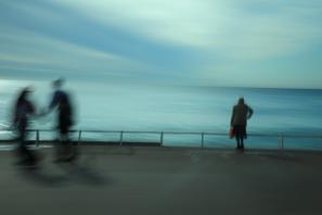 Seit über 20 Jahren bin ich wieder einmal in Nizza. Nach dem Flughafen führt die Straße am Meer entlang, auf der berühmten Promenade herrscht noch reger Betrieb. Die Menschen sind nur als Silhouetten vor dem letzten Leuchten des Meeres erkennbar, die Farben in der Dunkelheit von einer durchdringenden Intensität.